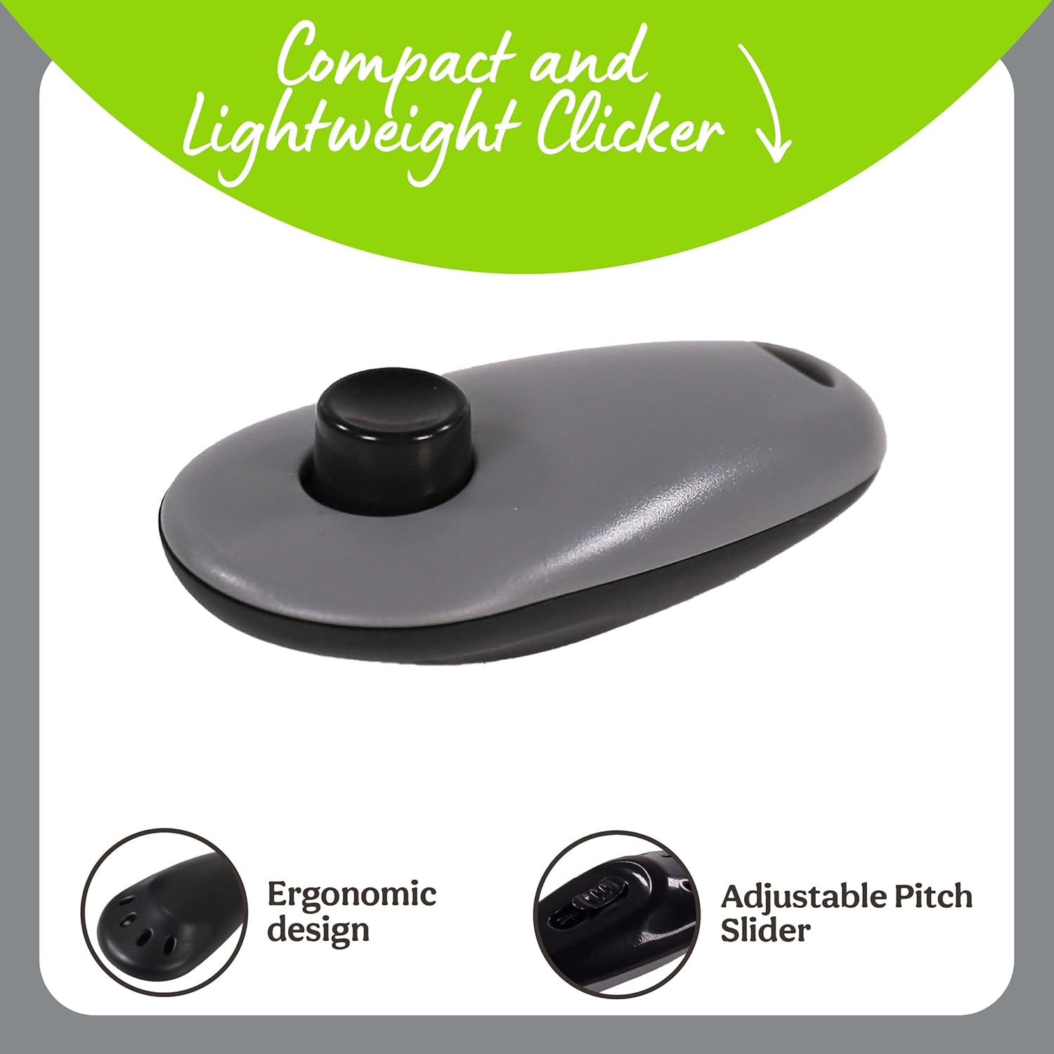 Clicker training is one of the most effective dog training methods. Using the clicker with treats or affection will teach your dog to have postive association with the clicker sound. All in one adjusble clicker.